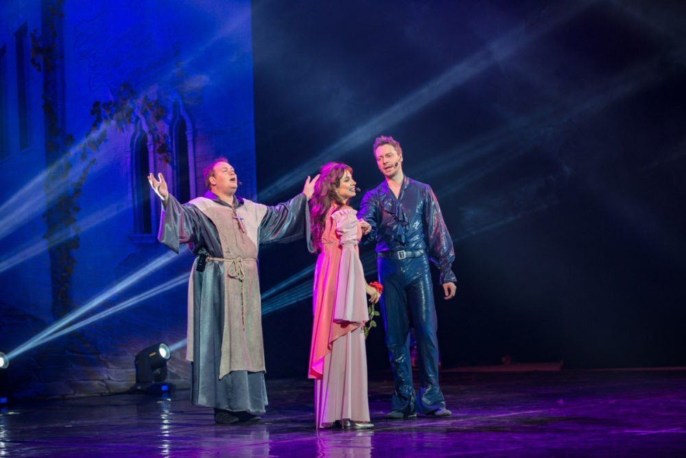 Мюзикл-шоу — это яркая, динамичная, костюмированная театрализованная программа, в которой не просто звучат арии из знаменитых мюзиклов, а демонстрируются отрывки из спектаклей, которые связаны между собой в единую историю интересным конферансом. Первое отделение — это легендарная история «Нотр Дам де Пари», а второе отделение — история Ромео и Джульетты. Две потрясающие истории в одной программе. Только «живое» исполнение!